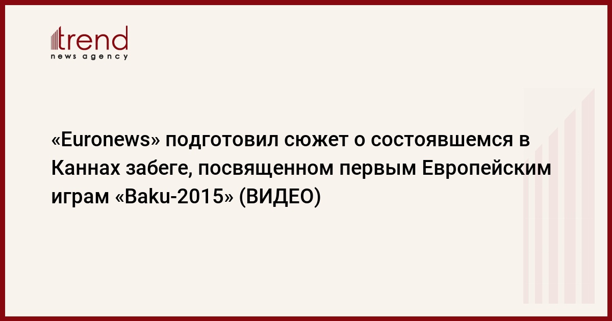 БАКУ /Trend/ - Телеканал "Euronews" подготовил сюжет о состоявшемся в Каннах забеге, посвященном первым Европейским играм "Baku-2015", сообщает АзерТАдж.