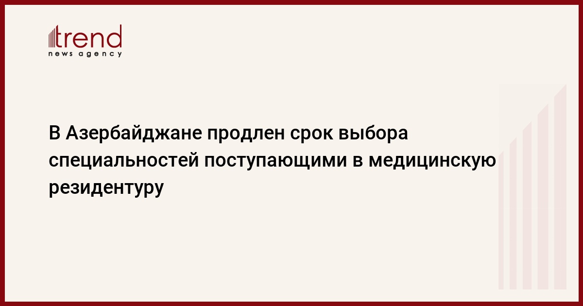 БАКУ /Trend/ - В Азербайджане продлен срок выбора специальностей поступающими в медицинскую резидентуру, говорится в сообщении Государственной комиссии по приему студентов (ГКПС), распространенном в четверг.