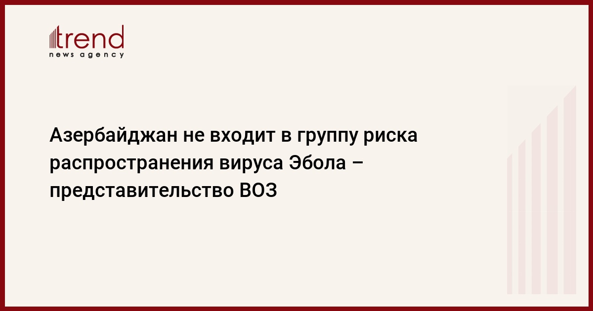 БАКУ /Trend/ - В связи с распространением вируса Эбола в группу риска входят Гвинея, Сьерра-Леоне, Либерия и Нигерия. Азербайджан, как и остальные страны, в группу риска не входит. Об этом сообщили в понедельник Trend в азербайджанском представительстве Всемирной организации здравоохранения (ВОЗ).