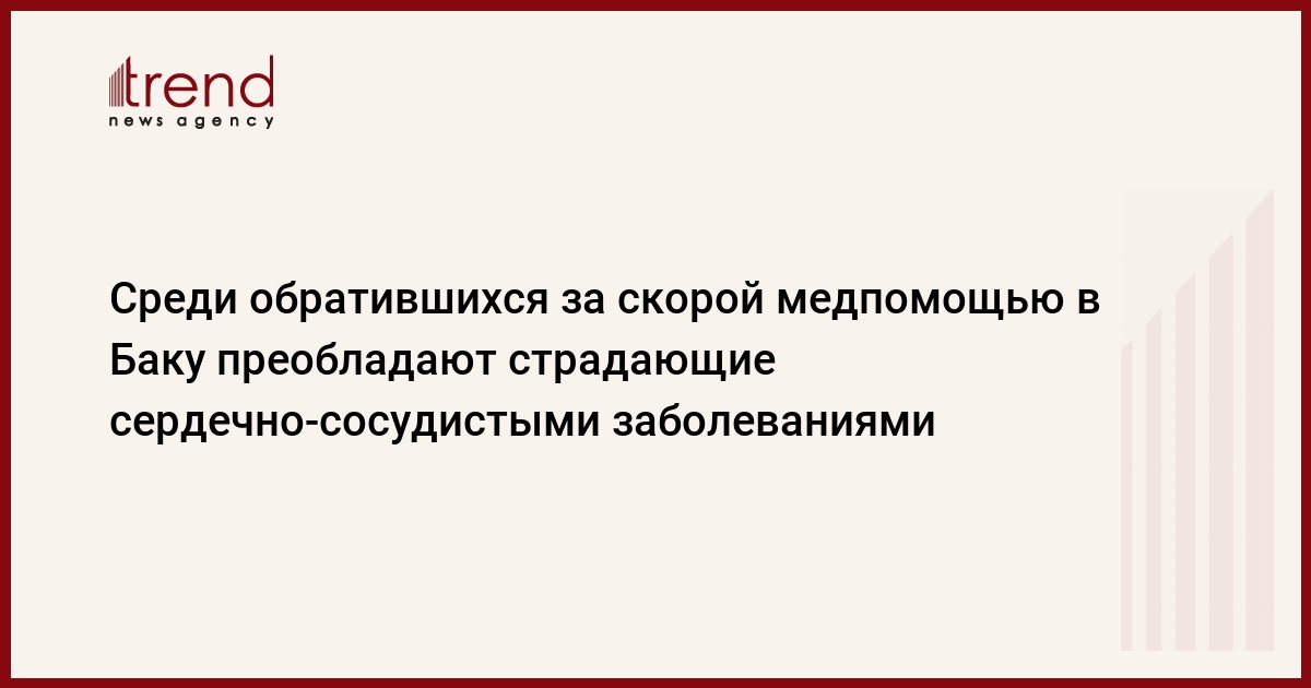 БАКУ /Trend/ - Среди обратившихся с начала летнего сезона к врачам Бакинской станции скорой и неотложной медицинской помощи преобладают лица с сердечно-сосудистыми заболеваниями и болезнями дыхательной системы. Об этом сообщил Trend в четверг заместитель главного врача Бакинской станции скорой и неотложной медицинской помощи Огтай Шахмалыев.