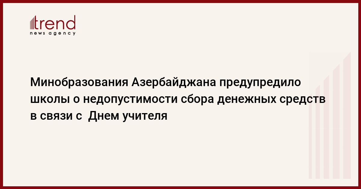 БАКУ /Trend/ - В Азербайджане будут сняты с должностей учителя и директора школ, собирающие денежные средства в связи с Днем учителя.