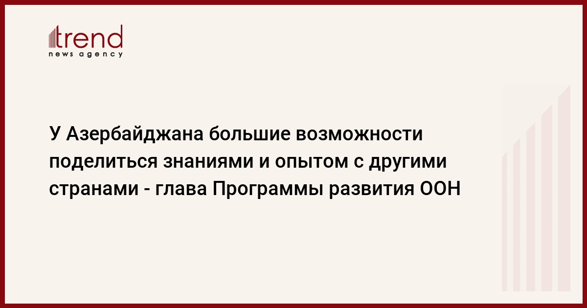 БАКУ /Trend/ - Азербайджан сейчас переживает интереснейший период своей истории, и у страны большие возможности поделиться своими знаниями и опытом, поддерживая таким образом другие государства в достижении ими целей развития. Об этом в пятницу в Баку в ходе сессии на тему "От целей развития тысячелетия до новых приоритетов глобального развития" в Университете "ADA" сказала руководитель Программы развития ООН (UNDP) Хелен Кларк.