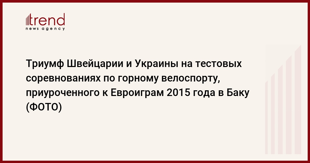 БАКУ /Trend/ - Тестовые соревнования по горному велоспорту, приуроченные к Европейским Играм 2015 года в Баку имели большой успех с победой швейцарца Мартина Фангера и украинки Яны Беломоиной.