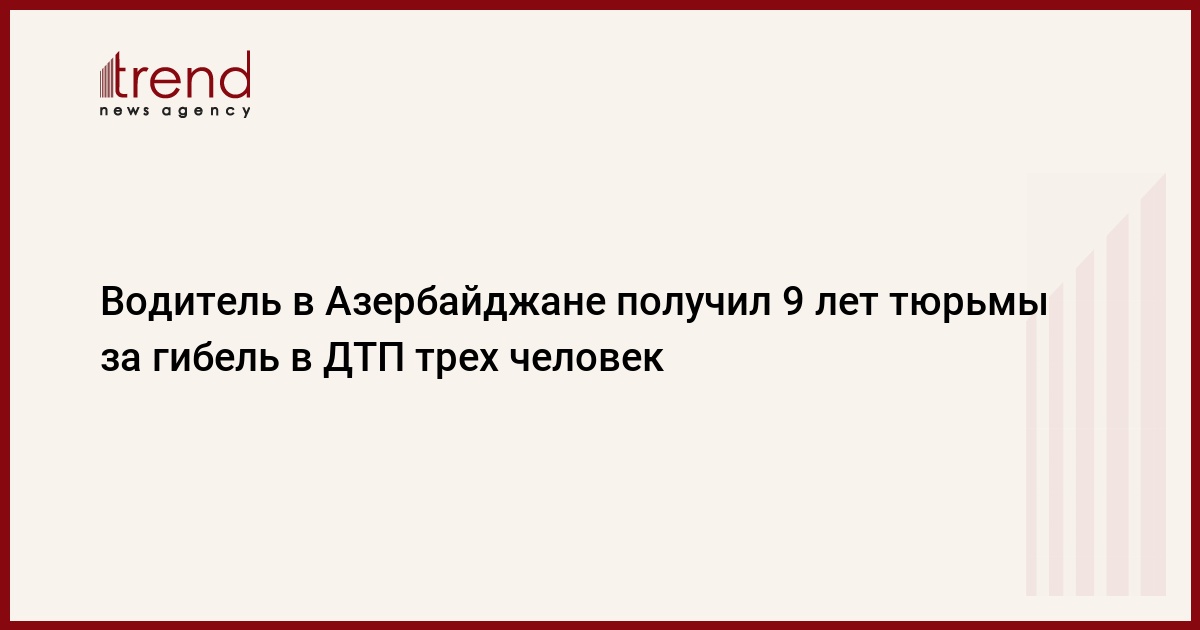 БАКУ /Trend/ - Бакинский суд по тяжким преступлениям приговорил к девяти годам лишения свободы Гурбана Алиева, обвиняемого в совершении тяжелого ДТП, которое повлекло за собой гибель трех и травмы пяти человек.
