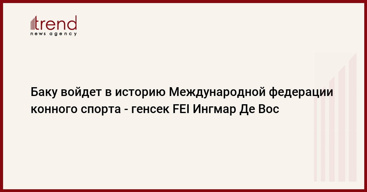 БАКУ /Trend/ В Баку с 11 по 14 декабря 2014 года проходит ежегодная Генеральная ассамблея Международной федерации конного спорта (FEI). Предлагаем вниманию интервью с генеральным секретарем FEI Ингмаром Де Восом корреспонденту Trend.