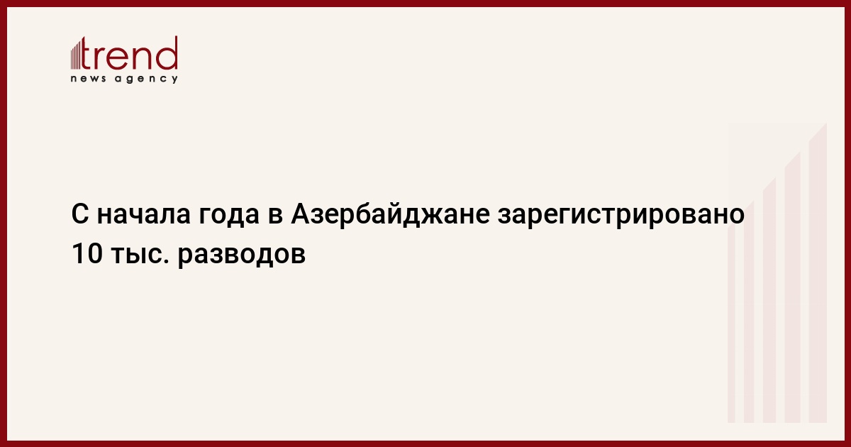 БАКУ /Trend/ - За 11 месяцев текущего года в Азербайджане было заключено 73,2 тысячи браков и зарегистрировано 10 тысяч разводов.