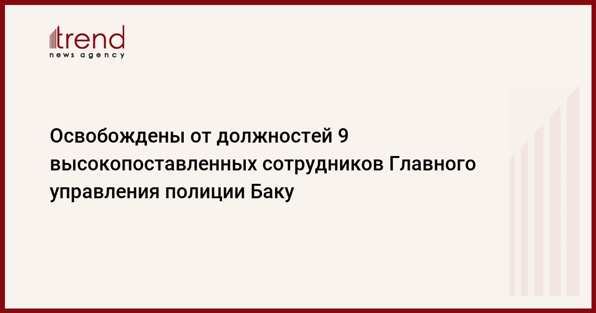 БАКУ /Trend/ - Девять высокопоставленных сотрудников Главного управления полиции города Баку освобождены от занимаемых должностей за серьезные недостатки в работе, говорится в понедельник в сообщении министерства внутренних дел.