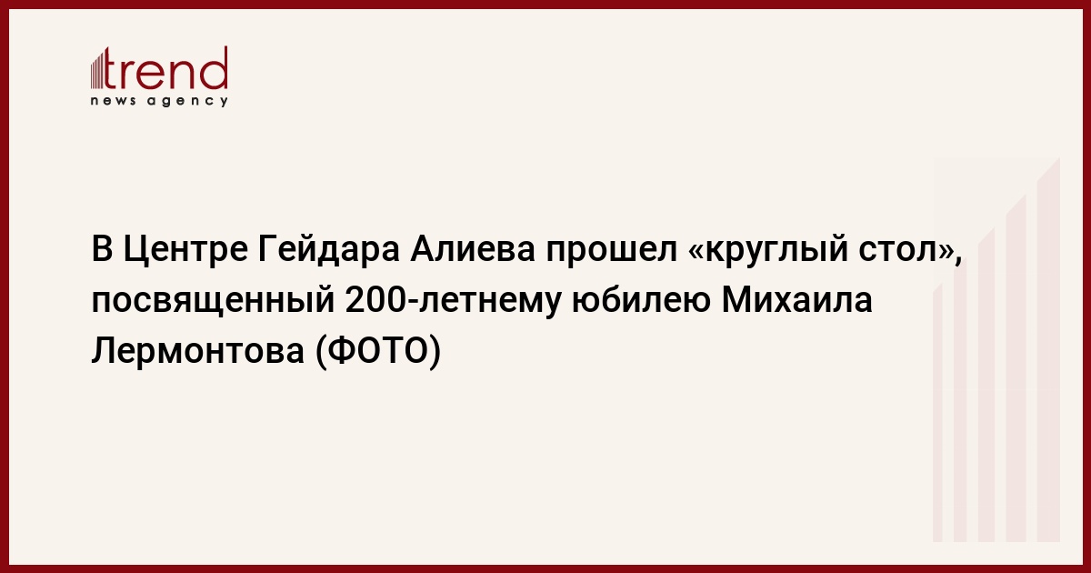 БАКУ /Trend/ - В Центре Гейдара Алиева в понедельник состоялся "круглый стол", посвященный 200-летнему юбилею выдающегося русского поэта, писателя и драматурга Михаила Лермонтова.