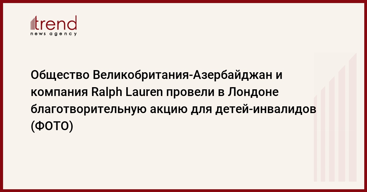 БАКУ /Trend/ - Общество Великобритания-Азербайджан и компания Ralph Lauren провели в Лондоне совместную благотворительную акцию для детей-инвалидов, сообщает АзерТАдж.