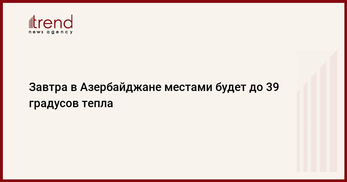 В Баку и на Абшеронском полуострове 23 июня ожидается переменная облачность без осадков, умеренный северо-западный ветер. Температура воздуха ночью составит 20-24, днем - 30-35 градусов тепла.