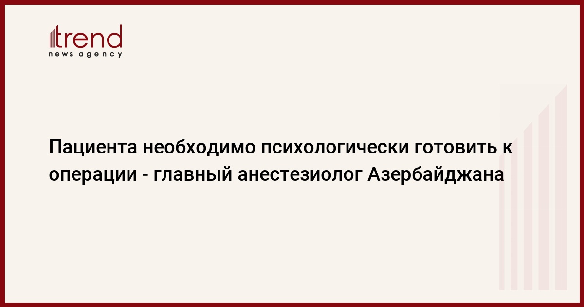 БАКУ /Trend/ - При подготовке к хирургической операции важную роль играет психическое и эмоциональное состояние пациента. Об этом сказал Trend во вторник главный анестезиолог-реаниматолог министерства здравоохранения Азербайджана, заслуженный врач Айдын Гадиров.