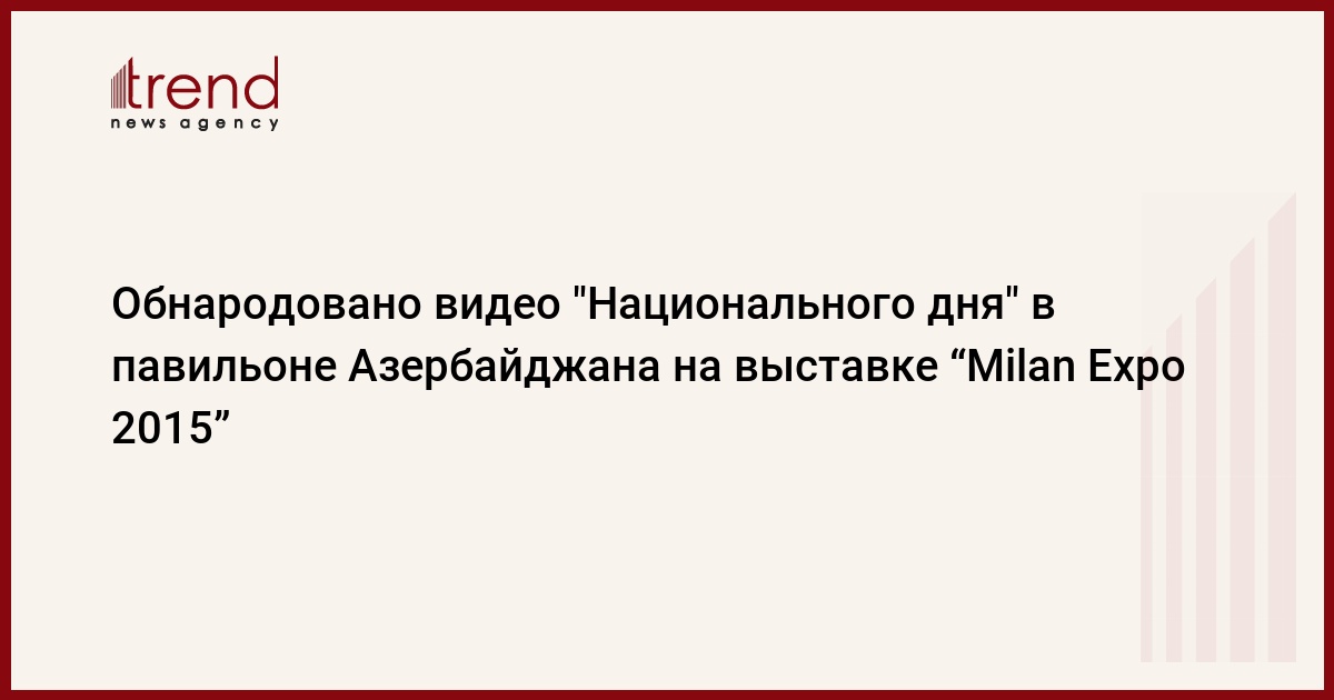 Отметим, что азербайджанский павильон на Всемирной выставке "Milan Expo 2015" организован Фондом Гейдара Алиева и Центром Гейдара Алиева.