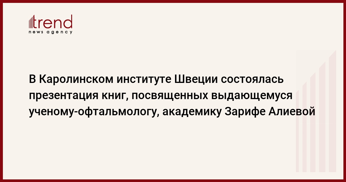 БАКУ/Trend/ - На прошедшем 20-23 октября в Стокгольме Международном форуме Европейской комиссии и Европейского центра контроля и профилактики заболеваний (ECDC) по обсуждению международных стандартов медицинской помощи состоялась презентация книг "Стерилизация изделий медицинского назначения" и "Основы инфекционного контроля", посвященных выдающемуся ученому-офтальмологу, академику Зарифе Алиевой.
