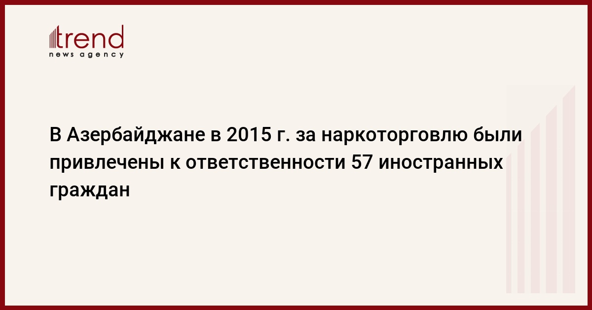 БАКУ / Trend/ - В Азербайджане в 2015 году к ответственности за незаконный оборот наркотических средств были привлечены 57 иностранных граждан. Об этом говорится в отчете, подготовленном Рабочей группой Госкомиссии по борьбе с наркоманией и незаконным оборотом наркотических средств.