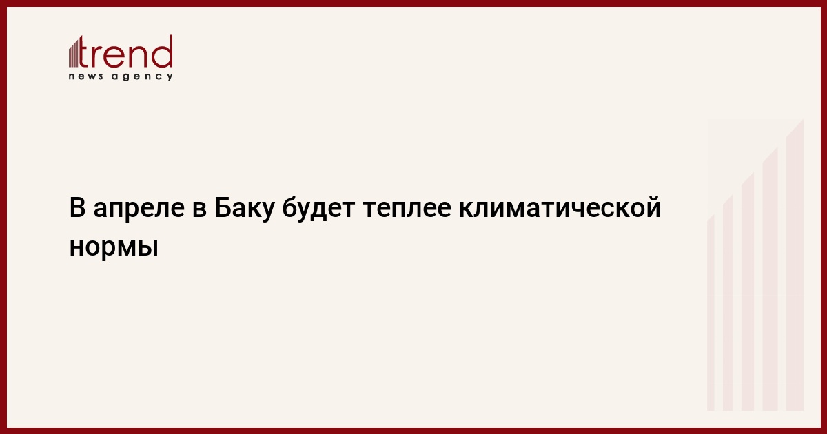 БАКУ /Trend/ - В апреле среднемесячная температура воздуха в Баку и на Абшеронском полуострове будет близкой к климатической норме, а местами превысит норму, сообщили Trend в четверг в Национальном департаменте гидрометеорологии министерства экологии и природных ресурсов.