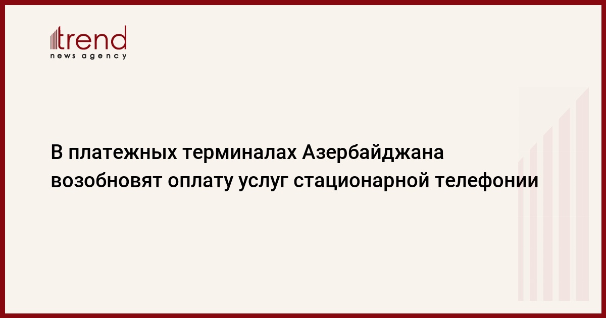 БАКУ /Trend/ - Оплата услуг стационарной связи и интернета ООО Aztelekom и производственного объединения (ПО) "Бакинская телефонная связь" вновь будет доступна в платежных терминалах eManat, сказали Trend в четверг в компании Modenis (технический центр по установке и сервисной поддержке платежных систем eManat).