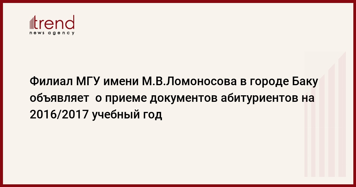 Филиал Московского государственного университета имени М.В.Ломоносова в городе Баку объявляет о приеме документов абитуриентов на 2016/2017 учебный год на следующие факультеты по специальностям: