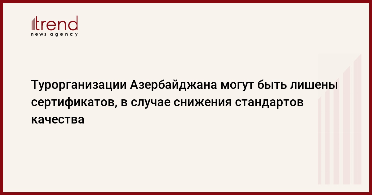 БАКУ /Trend/ - В Азербайджане будут аннулированы сертификаты туристических организаций, качество услуг (обслуживания) которых снизилось.