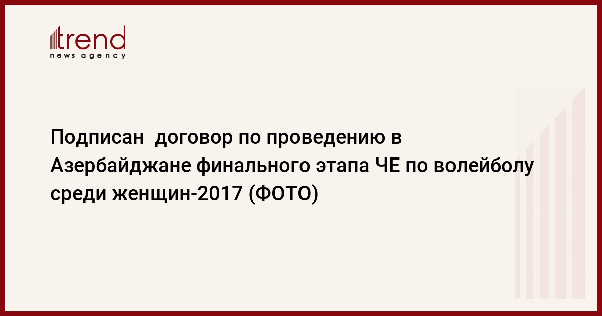 БАКУ /Trend/ - В Баку в среду был подписан официальный договор по проведению в Азербайджане в 2017 году финального этапа чемпионата Европы по волейболу среди женщин.