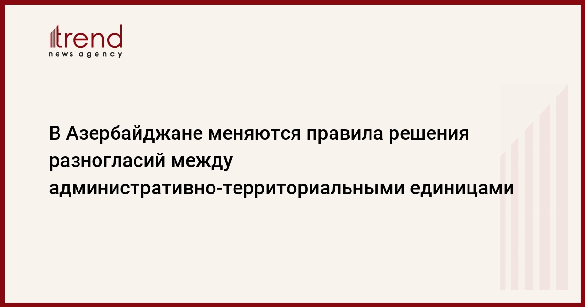 БАКУ /Trend/ - Разногласия между административно-территориальными единицами Азербайджана будут решаться согласно правилам, установленным в законе "О территориальном устройстве и административно-территориальном делении".