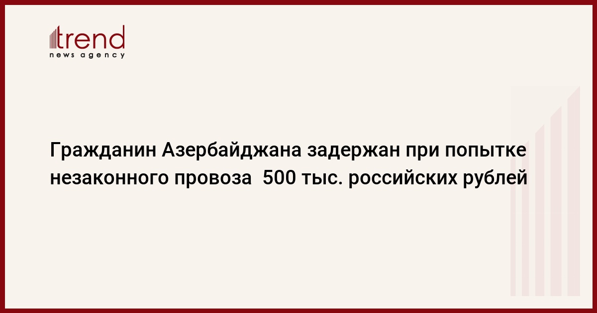 БАКУ /Trend/ - На таможенном посту «Самур» Хачмазского таможенного управления при попытке незаконного провоза в Россию денежных средств был задержан гражданин Азербайджана, сообщили Trend в четверг в Государственном таможенном комитете.