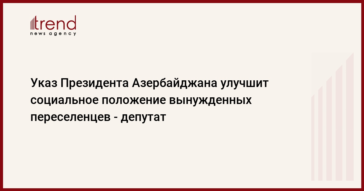 БАКУ /Trend/ - Указ главы Азербайджанского государства об обеспечении адресности средств, выделяемых из государственного бюджета для социальной защиты вынужденных переселенцев и приравненных к ним лиц, и упрощение механизма их выплаты является шагом, направленным на улучшение соцобеспечения людей, принадлежащих к этой категории населения, сказал Trend во вторник депутат Милли Меджлиса (парламента) Агиль Аббас.