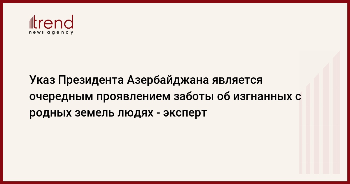 БАКУ /Trend/ - Указ Президента Ильхама Алиева в связи с оплатой электроэнергии, используемой некоторыми вынужденными переселенцами, до их переселения на новые жилые участки за счет государства является очередным проявлением заботы о людях, изгнанных с родных земель.Об этом Trend сказал в среду эксперт Бахруз Гулиев.