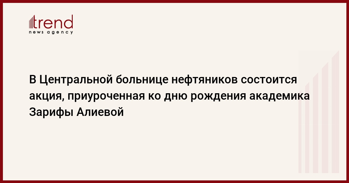 БАКУ /Trend/ - Завтра с 09:00 до 15:00 специалисты Офтальмологического отделения Центральной больницы нефтяников проведут акцию по бесплатному обследованию граждан, приуроченную ко дню рождения выдающегося ученого-офтальмолога, академика Зарифы Алиевой, говорится в сообщении пресс-службы минздрава, распространенном в среду.