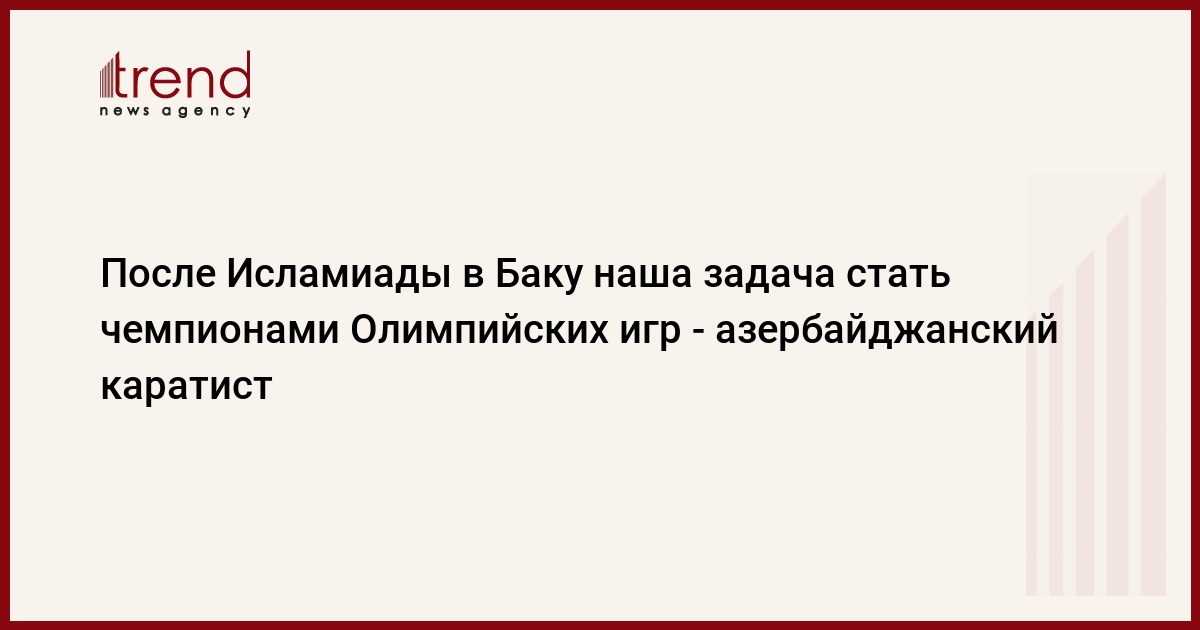 БАКУ /Trend/ - После IV Игр исламской солидарности наша задача стать чемпионами Олимпийских игр, сказал в субботу журналистам азербайджанский каратист Фирдовси Фарзалиев, завоевавший "бронзу".