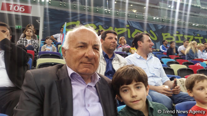 На соревнования они пришли вместе с внуком. Расулов сообщил, что они регулярно посещают выступления азербайджанских гимнастов.
