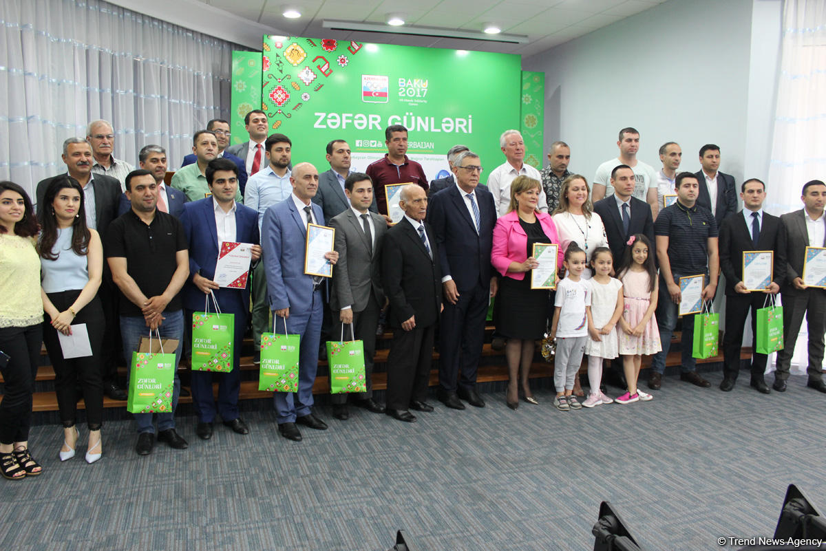 БАКУ /Trend Life/ - В Национальном олимпийском комитете (НОК) Азербайджана состоялась церемония награждения представителей СМИ, различных организаций и коллективов, принявших самое активное участие в освещении проекта Zəfər günləri ("Дни триумфа") в рамках IV Игр исламской солидарности Баку- 2017, сообщает Trend Life.