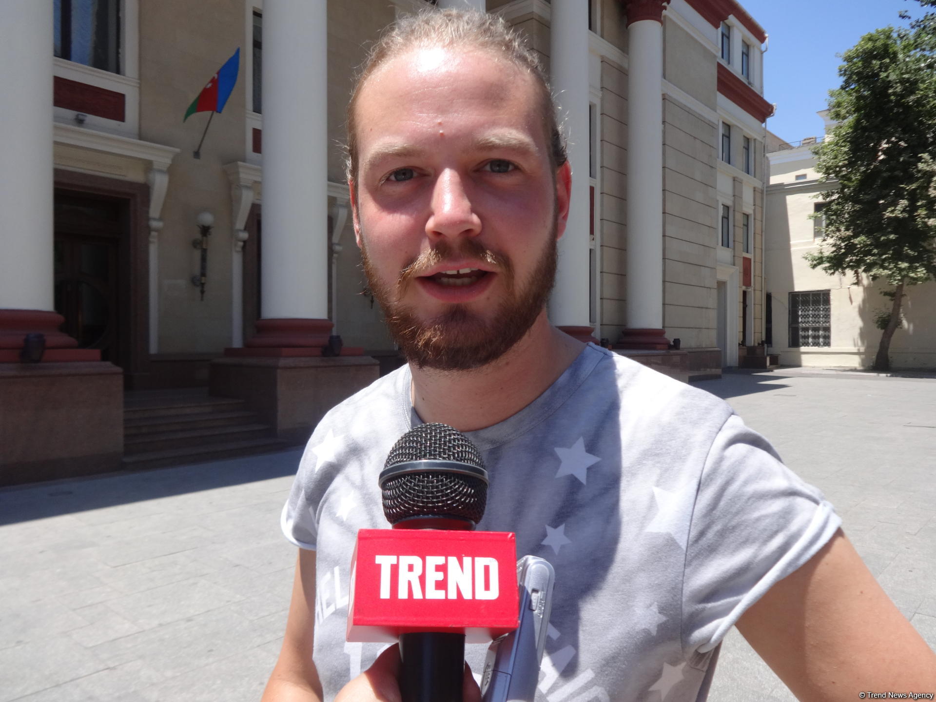 БАКУ /Trend/ - Я впервые приехал в Азербайджан, не ожидал, что Баку такой красивый и современный город, сказал Trend британский болельщик Грэй Битвиш.