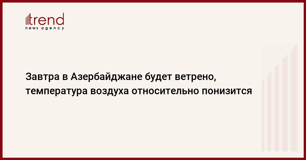 Завтра со второй половины дня и до утра 8 июля в Баку и на Абшеронском полуострове прогнозируются усиление северо-западного ветра, постепенное снижение температуры воздуха на 4-6 градусов.