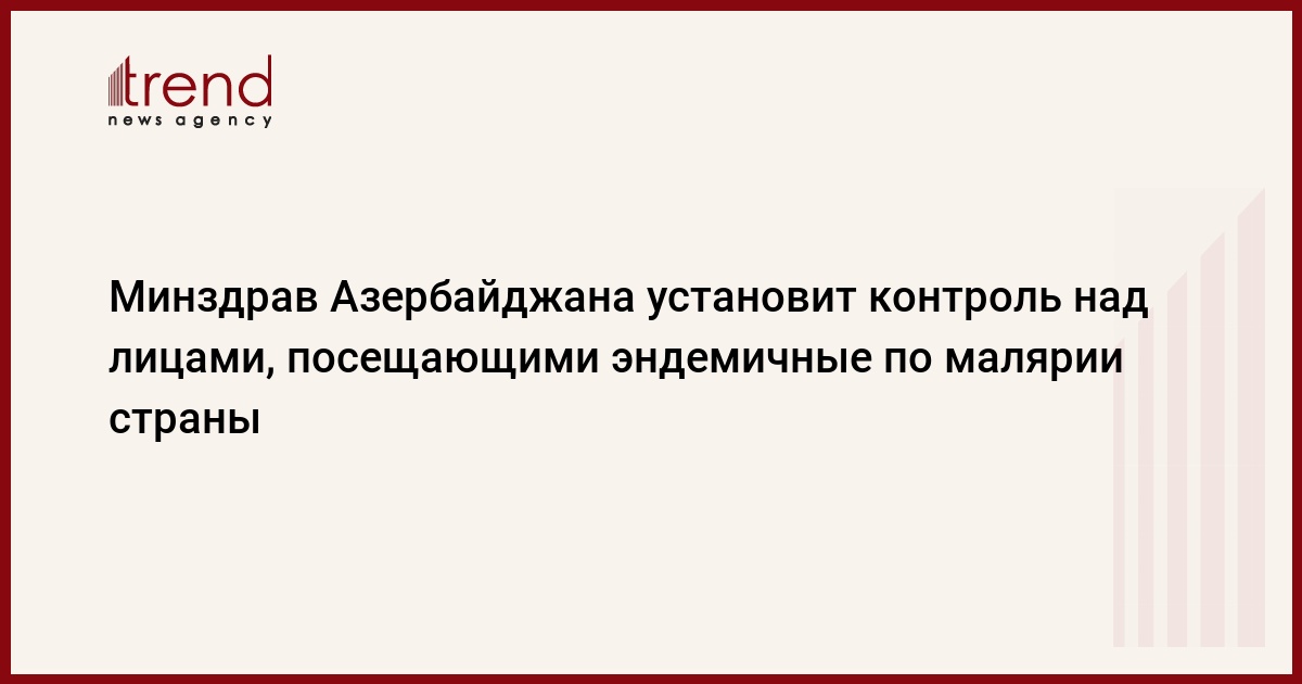 БАКУ /Trend/ - Министерство здравоохранения Азербайджана обеспечит контроль над лицами, посещающими эндемичные по малярии страны, а также над иностранными гражданами, прибывающими из этих стран.