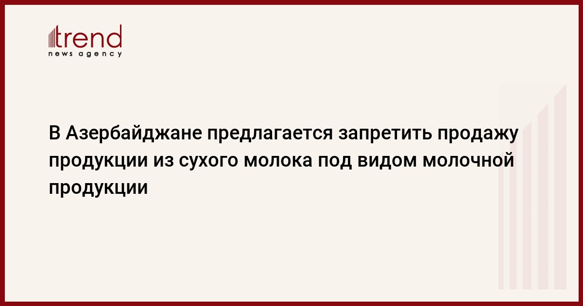 БАКУ /Trend/ - В Азербайджане предложено запретить продажу продукции, изготовленной из сухого молока, под видом молочной продукции, и четко дифференцировать продукты, изготовленные из сухого и натурального молока.