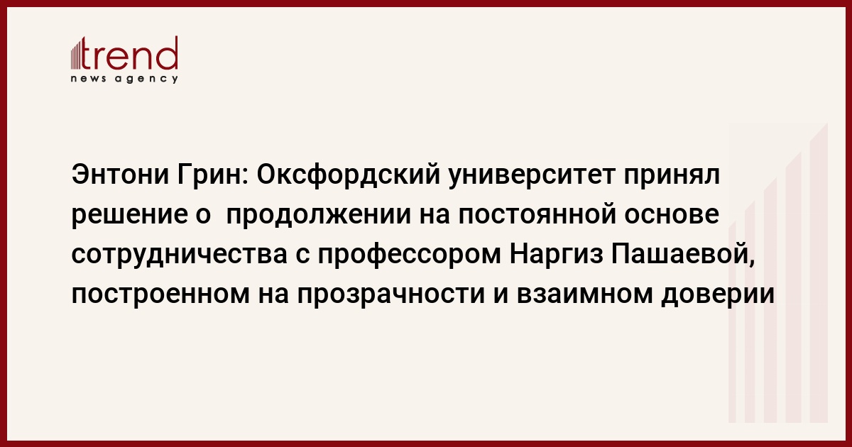 Г-н Грин подчеркнул, что за пять лет функционирования Центра имени Низами Гянджеви при Оксфордском университете он оправдал свое академическое назначение, и расценил в качестве важного исторического момента его превращение в неотъемлемую часть Оксфордского университета. Официальный представитель университета отметил, что отныне Оксфордский университет готов прилагать все усилия для обеспечения постоянной деятельности Научного Центра имени Низами Гянджеви под руководством академика Наргиз Пашаевой в Оксфордском университете.