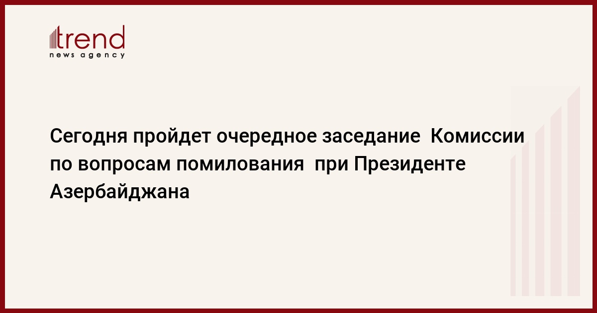 БАКУ /Trend/ - Сегодня пройдет очередное заседание Комиссии по вопросам помилования при Президенте Азербайджана, на котором будут рассмотрены поступившие обращения.