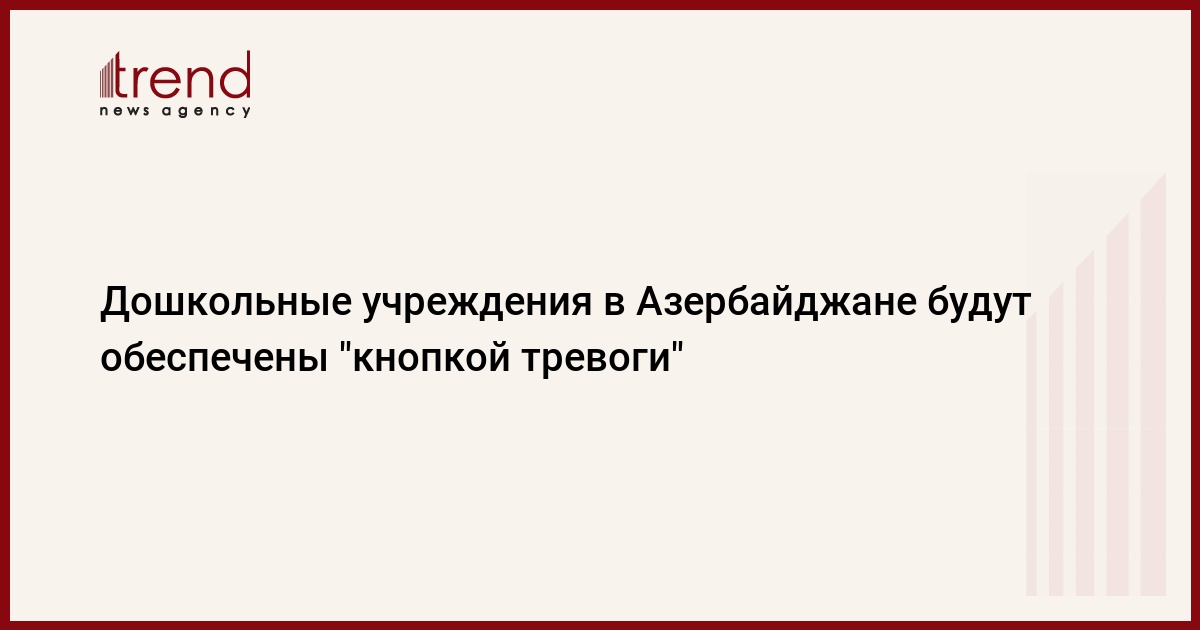 Министерству финансов страны поручено с 2019 года для обеспечения дошкольный учреждений "конпками тревоги" по согласованию с Главным управлением охраны Министерства внутренних дел Азербайджана предусмотреть в госбюджете страны необходимые для этого средства.