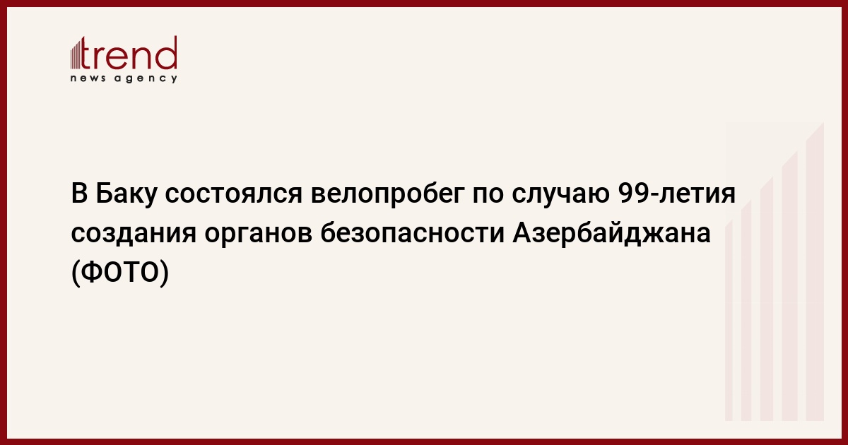 Накануне профессионального праздника в Баку состоялся велопробег, организованный Клубом велосипедного спорта (КВС) при СГБ, говорится в сообщении Службы государственной безопасности (СГБ).
