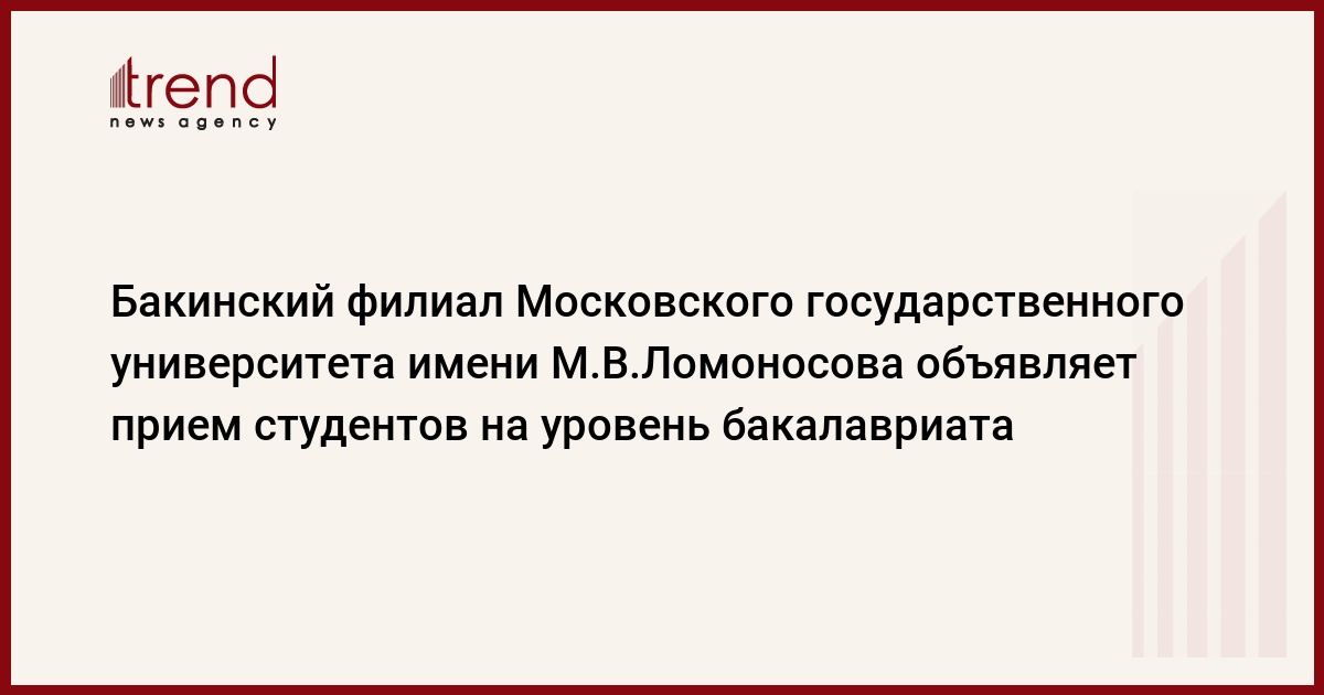 БАКУ /Trend/ - Бакинский филиал Московского государственного университета имени М.В.Ломоносова объявляет прием студентов (уровень бакалавриата с образованием на русском языке, обучение очное) на 2018/2019 учебный год по следующим направлениям подготовки: