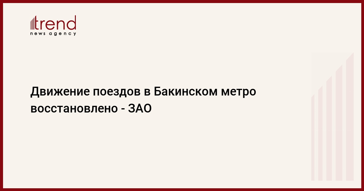 БАКУ /Trend/ - Движение поездов в Бакинском метро восстановлено, сообщил Trend глава пресс-службы ЗАО "Бакинский метрополитен" Бахтияр Мамедов.