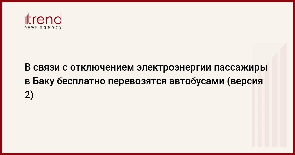 БАКУ /Trend/ - В связи с повторным отключением электроэнергии пассажиры в Баку бесплатно перевозятся автобусами.