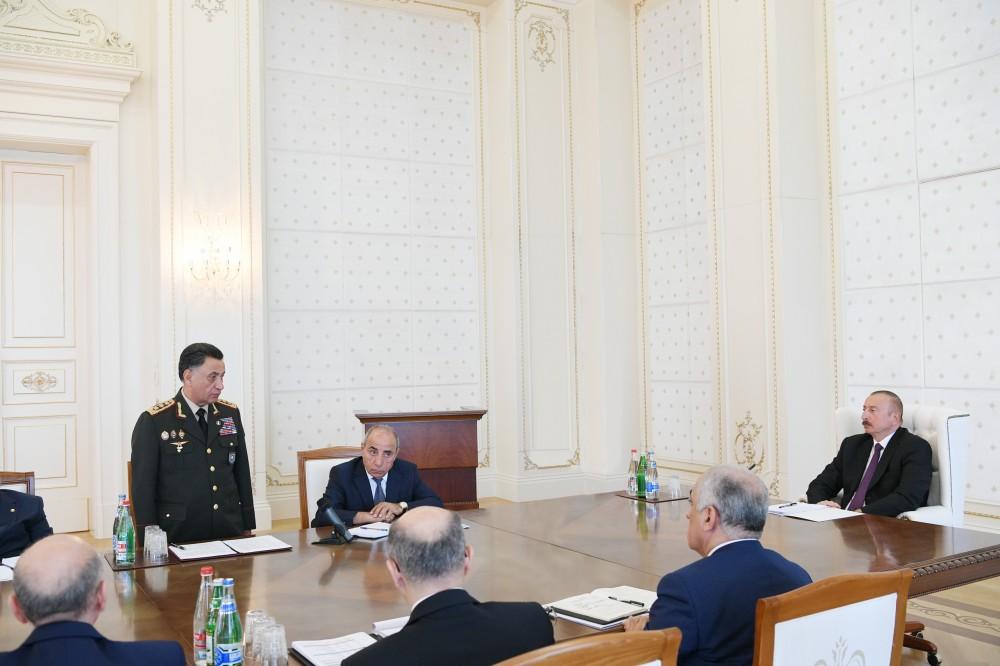 «Сразу после произошедшего я, руководствуясь Вашим поручением, дал указание о том, какие действия нам необходимо предпринимать в чрезвычайных ситуациях. Министерство внутренних дел вместе с другими структурами разработало и начало осуществлять дополнительные меры по охране порядка, обеспечению безопасности. Хочу доложить, что мы вместе с Министерством по чрезвычайным ситуациям приняли участие в эвакуации почти 30 тысяч человек. Кроме того, дорожная полиция сопровождала автобусы, развозившие граждан по домам. Уважаемый господин Президент, в связи с безопасностью движения мы, наряду с Государственной дорожной полицией, привлекли к этому делу в городе Баку 150 сотрудников патрульно-постовой службы и обеспечили нормальное движение.