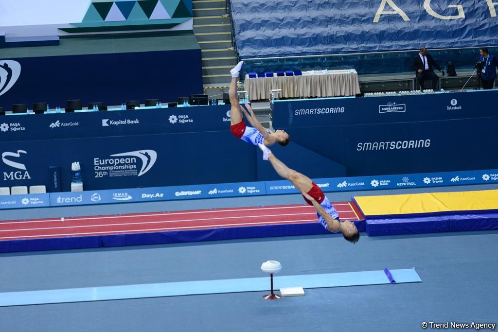 БАКУ /Trend/ - Азербайджанские гимнасты Илья Гришунин и Руслан Агамиров стали первыми в синхронных прыжках на батуте на Кубке мира FIG по прыжкам на батуте, который проводится в швейцарской коммуне Ароза, сообщает Inside the Games.