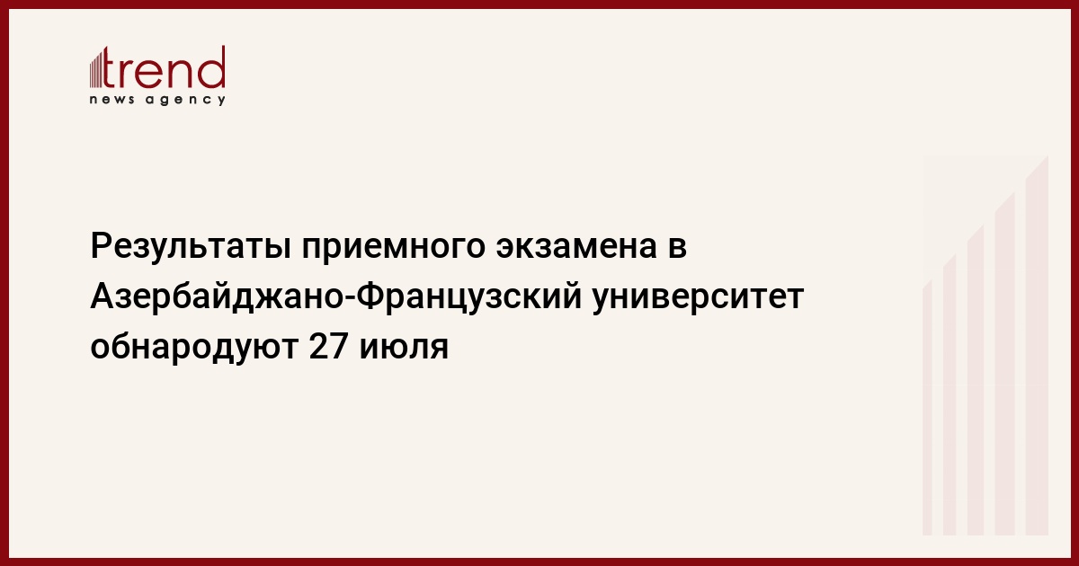 БАКУ /Trend/ - Результаты состоявшегося в среду приемного экзамена в Азербайджано-Французский университет, функционирующий при Азербайджанском государственном университете нефти и промышленности, будут объявлены 27 июля.