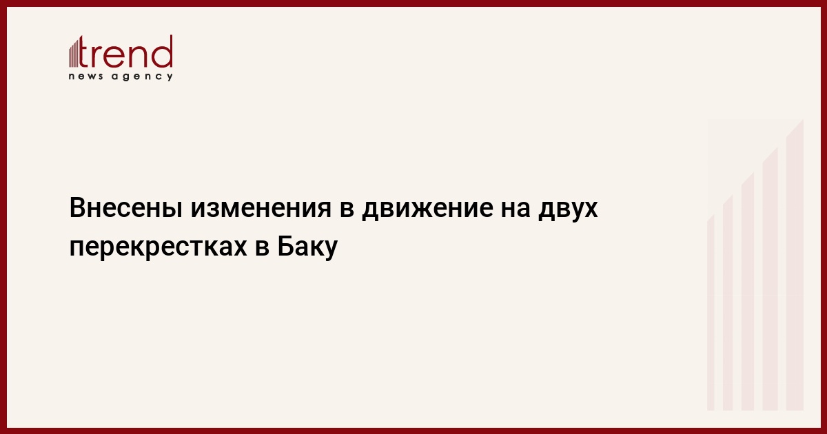 БАКУ /Trend/ - В Бинагадинском районе Баку сегодня начали действовать изменения в движении на участке пересечения улицы Шовкат Мамедовой с улицой Сулеймана Сани Ахундова, а также на участке пересечения улицы Ибрагимпаши Дадашова с улицей Сулеймана Сани Ахундова.