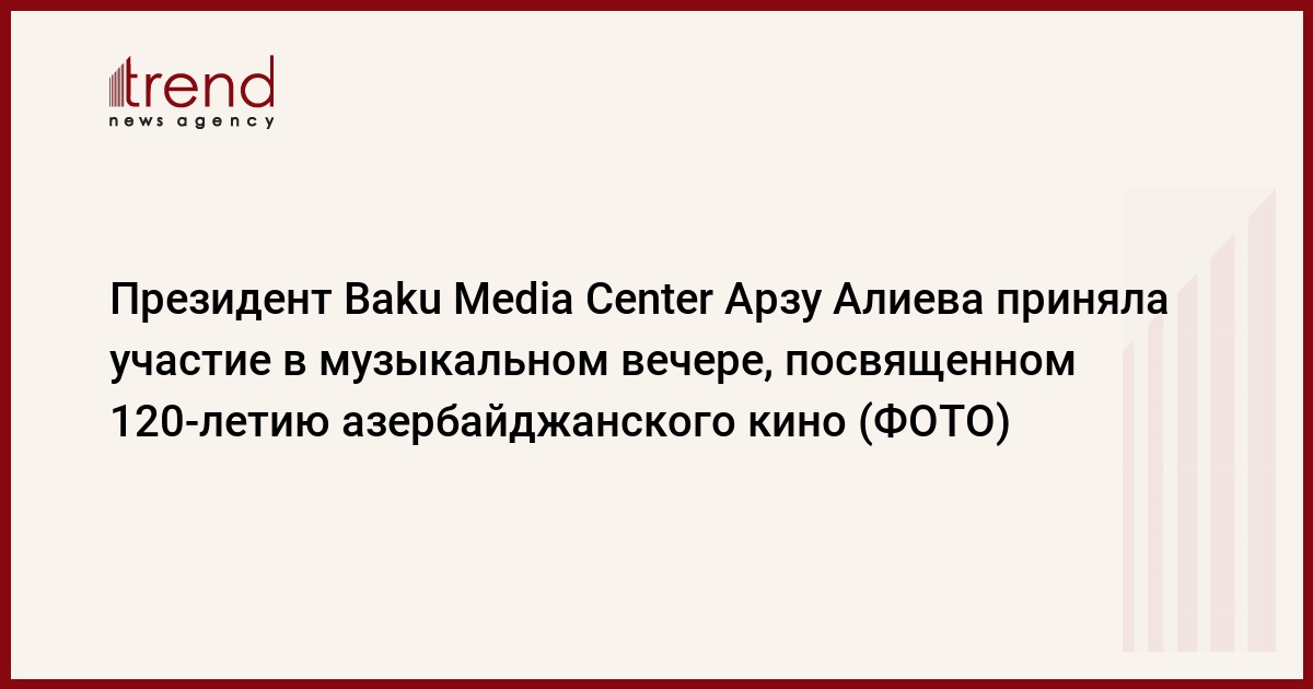 БАКУ /Trend/ - В Государственном историко-архитектурном музее-заповеднике «Комплекс Дворца Ширваншахов» накануне состоялся музыкальный вечер, посвященный 120-летию азербайджанского кино, организованный Baku Media Center, говорится в сообщении Baku Media Center, распространенном в субботу.