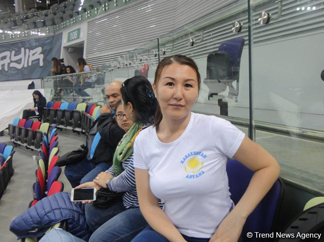 "Я родительница и в Баку приехала вместе со сборной командой Казахстана. Конечно, мы много слышали о чемпионате Азербайджана по аэробной гимнастике, были хорошие отзывы о предыдущих соревнованиях. Могу сказать, что организация действительно впечатляет - все строго, четко, соревнования проходят интересно. Желаю, чтобы из года в год аэробная гимнастика в Азербайджане развивалась и увеличивался уровень достижений азербайджанских спортсменов", - сказала зрительница.