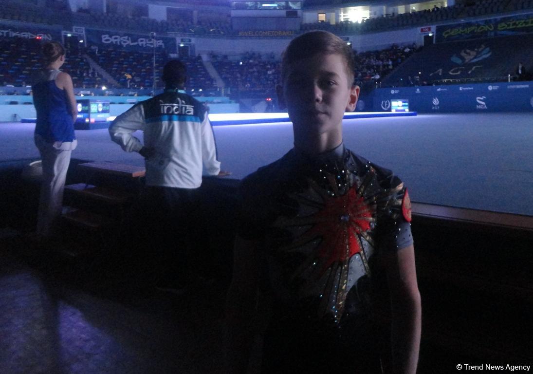 Российский гимнаст первый раз выступает на соревнованиях в Азербайджане и отметил, что ему очень понравилась Национальная арена гимнастики.