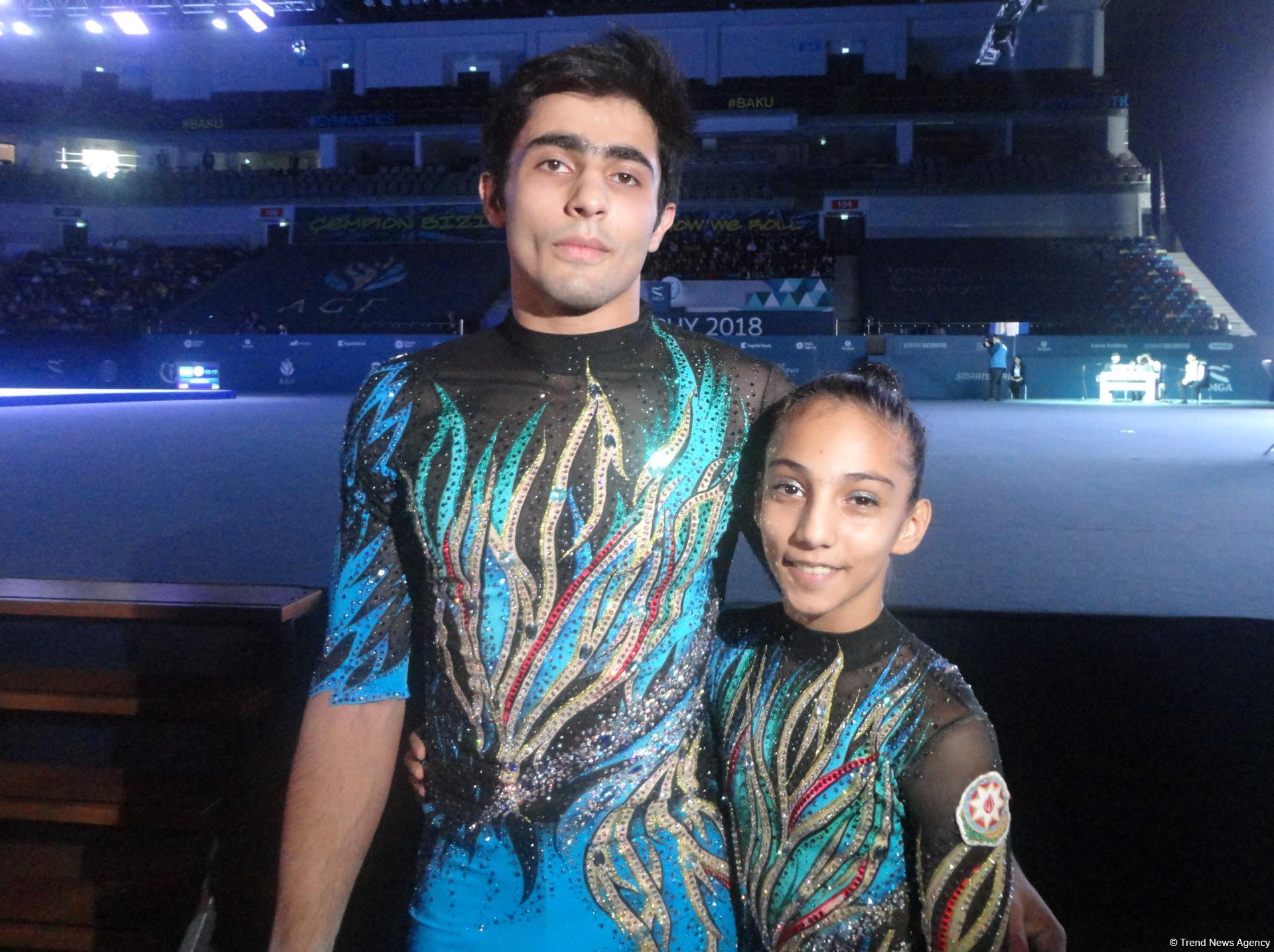 БАКУ /Trend/ - Азербайджанские гимнасты Абдулла Аль-Мяшайхи и Рухидил Гурбанлы, выступающие на Кубке мира по акробатической гимнастике в Баку в составе смешанной пары, остались довольны своим выступлением.